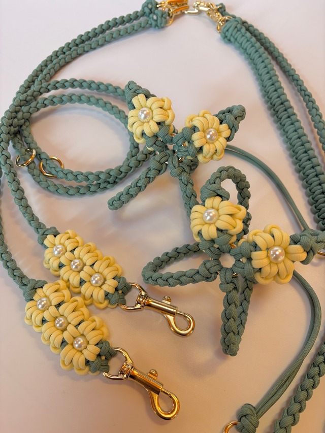 ★こちらは専用出品ページです★ 内容 ・お花付き四つ編みカフェリード カラーリング お花 ミモザ リード スカイブルー 金具 ゴールド ※ナスカンから30cmの所にマルカンを1つ付ける 4600円 ・お花付き四つ編みカフェリード カラーリング お花 ミモザ リード バーガンディ 金具 ゴールド ※ ナスカンから30cmの所にマルカンを1つ付ける 4600円 ・お花付きハーネス(NEW) カラーリング お花 ミモザ ハーネス バーガンディ 金具 ゴールド サイズ 40〜41cm 5300円 ・12/21のわんてらすin昭島にてお渡しさせていただきます 上記の内容をご確認いただき、お手続きをお願い致します。 どうぞよろしくお願い致します。