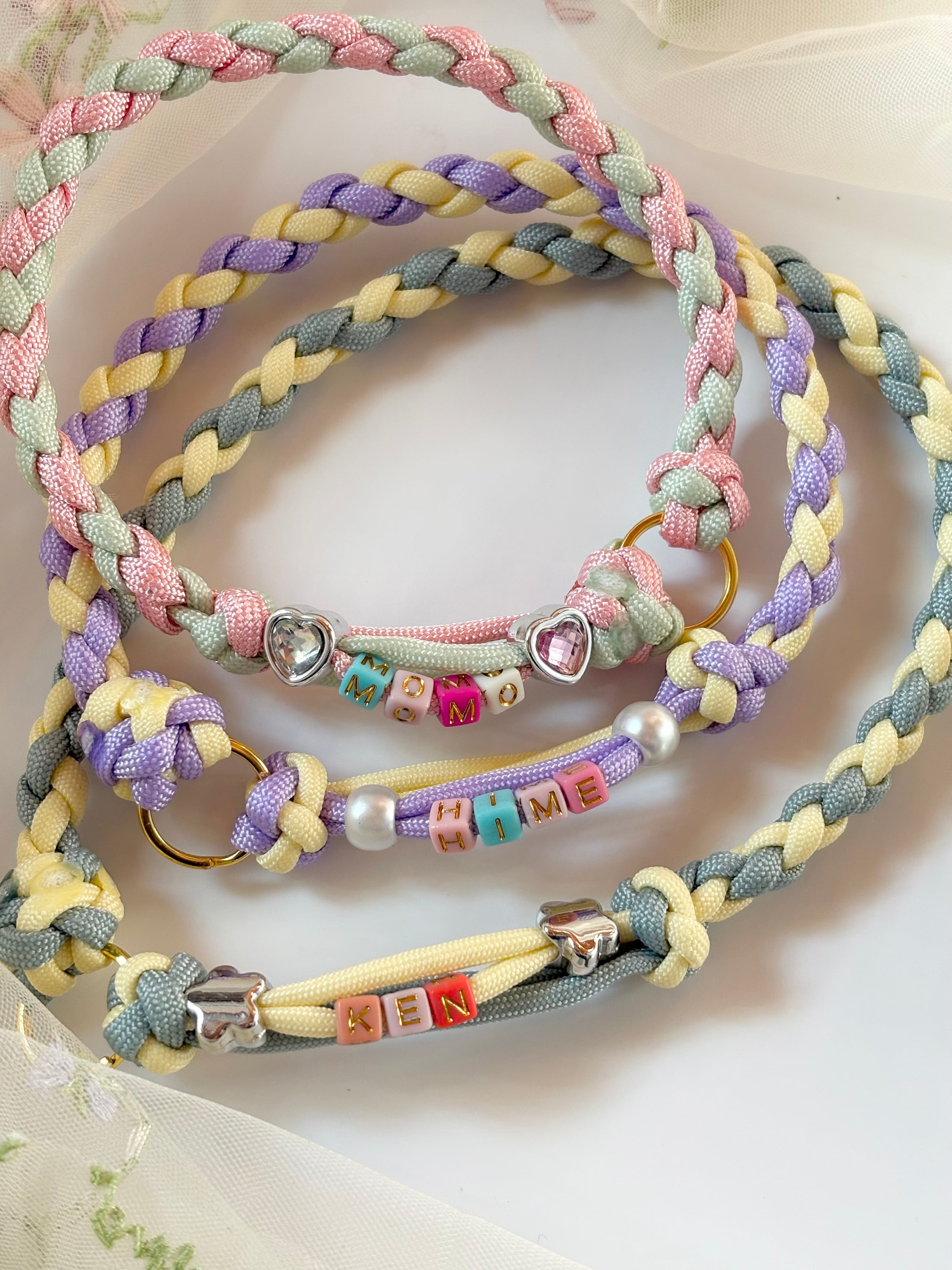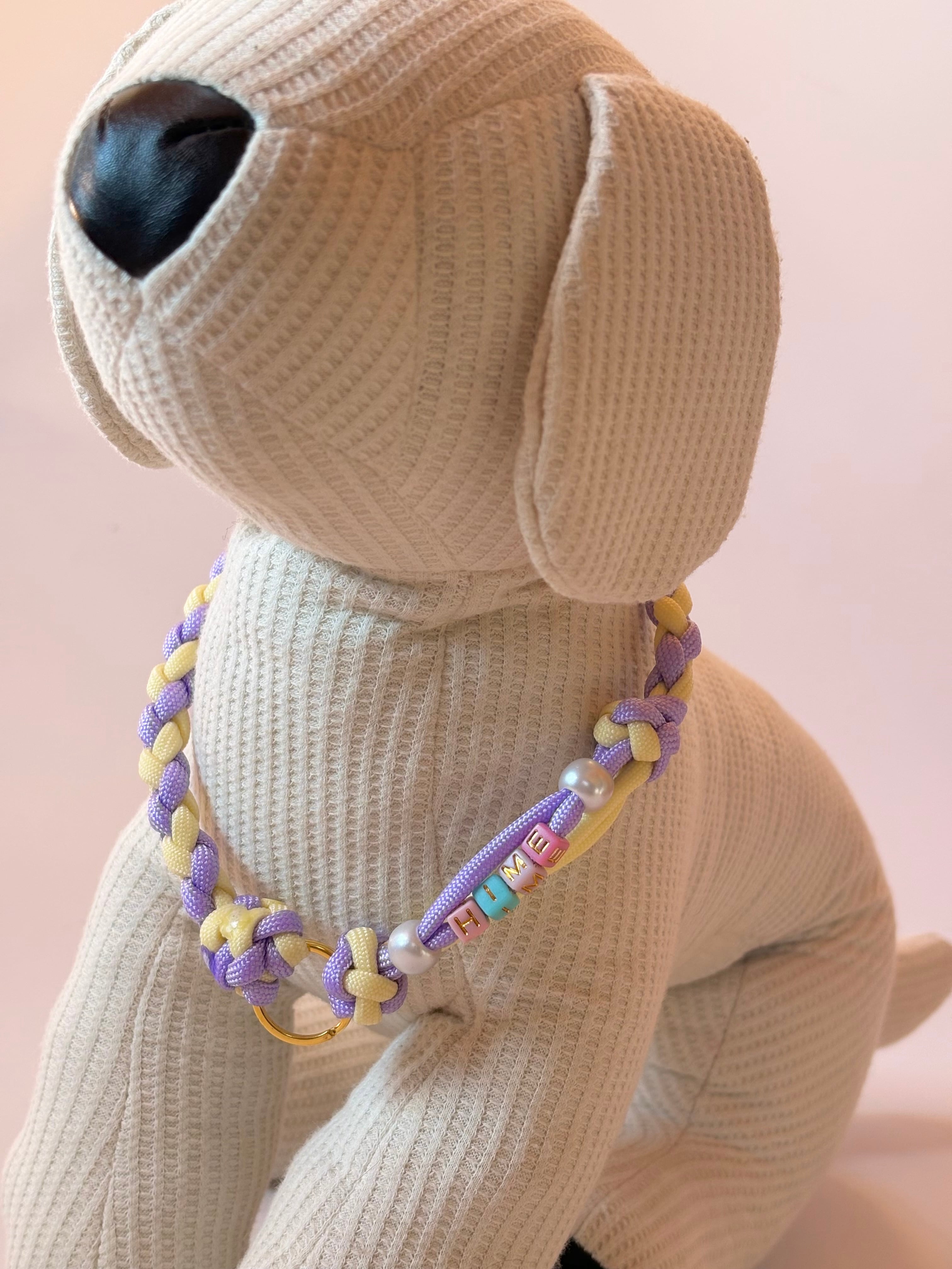 わんちゃんのお名前のビーズを入れて編んだパラコードネックレスです。
