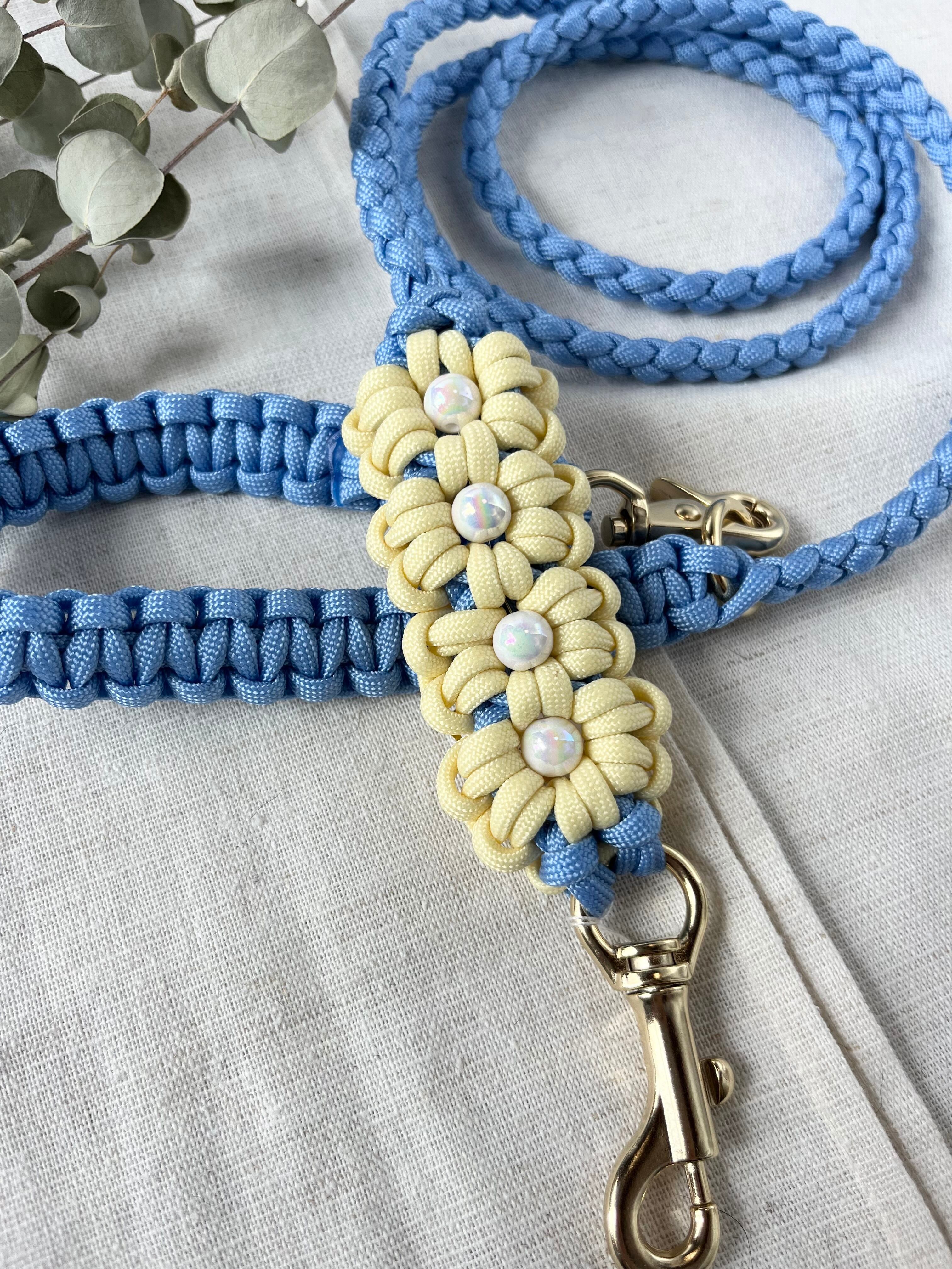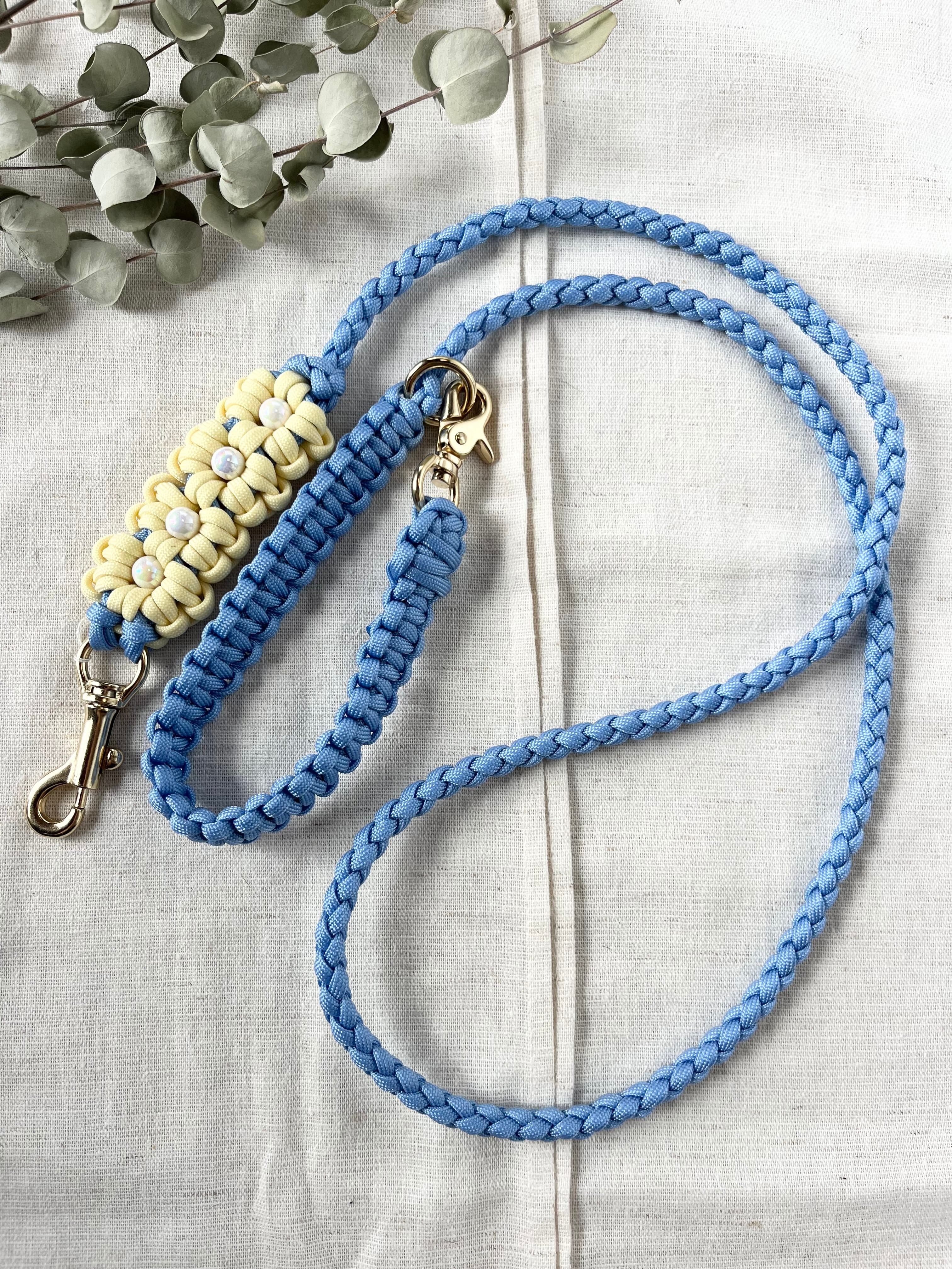 スタンダードな手に持つタイプで、持ちやすくて可愛い♡こちらは四つ編みで作っているので、細めのリードです。小型犬、中型犬におすすめですよ♪